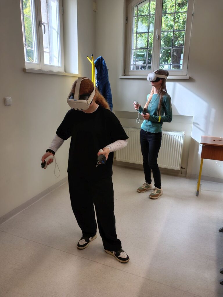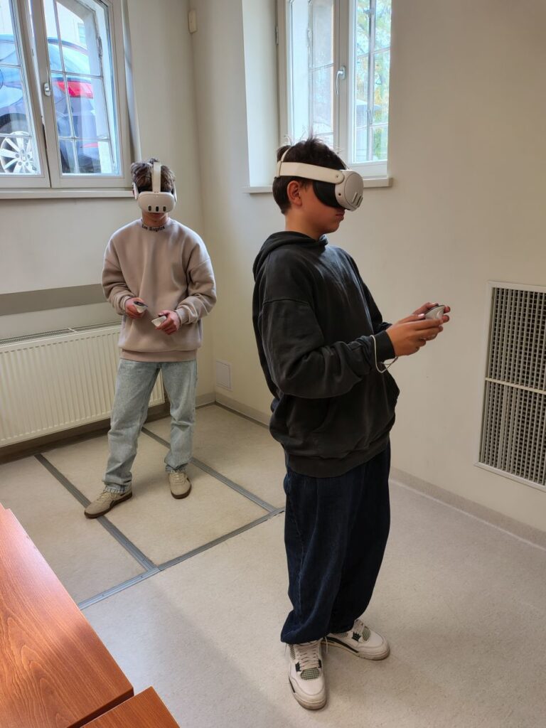 Po úvode nasledovala zaujímavá aktivita s virtuálnou realitou. Pomocou VR okuliarov si žiaci prezreli Mníchov a ocitli sa aj v Alpách, kde spoznávali nemecké prostredie, kultúru a pamiatky. Súčasťou prehliadky boli aj jazykové úlohy a hry, ktoré sa odohrávali priamo vo virtuálnom prostredí.