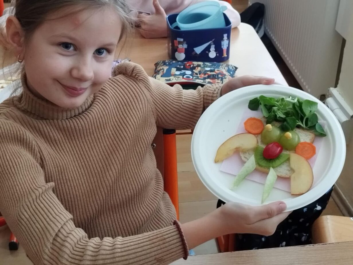 Najlepšia časť hodiny? Počas výkladu novej látky o dôležitosti ovocia a zeleniny vo výžive, mohli žiaci svoje farebné a veselé výtvory zjesť! Bola to odmena za ich kreativitu a tichý dôkaz toho, že niekedy je hranie sa s jedlom nielen povolené, ale priam žiaduce!