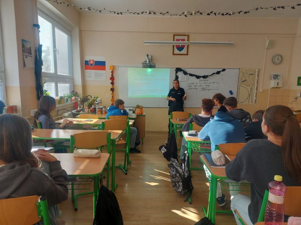 Dňa 4. novembra sa žiaci deviateho ročníka zúčastnili besedy s príslušníčkou Policajného zboru SR – mjr. Mgr. Denisa Babiarová, ktorá im priblížila tému trestnoprávnej zodpovednosti mladistvých.