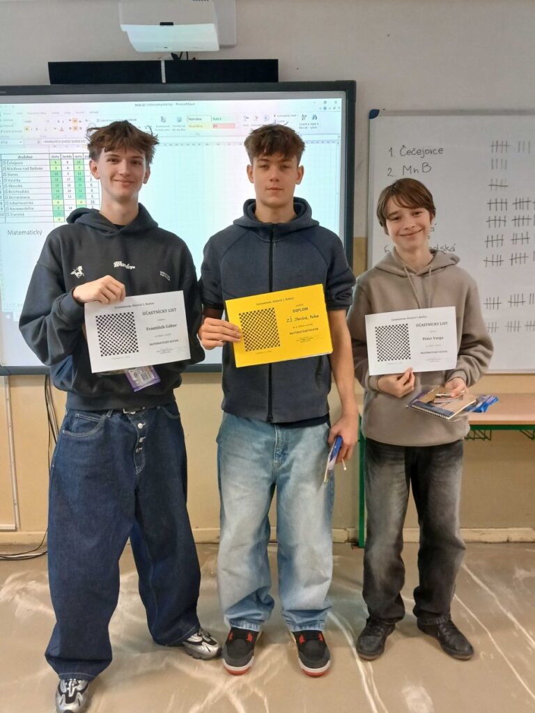 Našich deviatakov však nič nezaskočilo. Žiaci Peter Varga (9.A), František Gábor (9.A) a Lukáš Kozlay (9.C) už od úvodných úloh postupovali sebavedome a ich spolupráca bola ukážková. Postupne si získali veľký náskok a o víťazovi bolo rozhodnuté. Chlapci tak opäť po roku obhájili 1. miesto. Zo súťaže si odniesli nie len diplomy, sladkosti a vecné ceny, ale určite aj cenné skúsenosti a veselé zážitky.