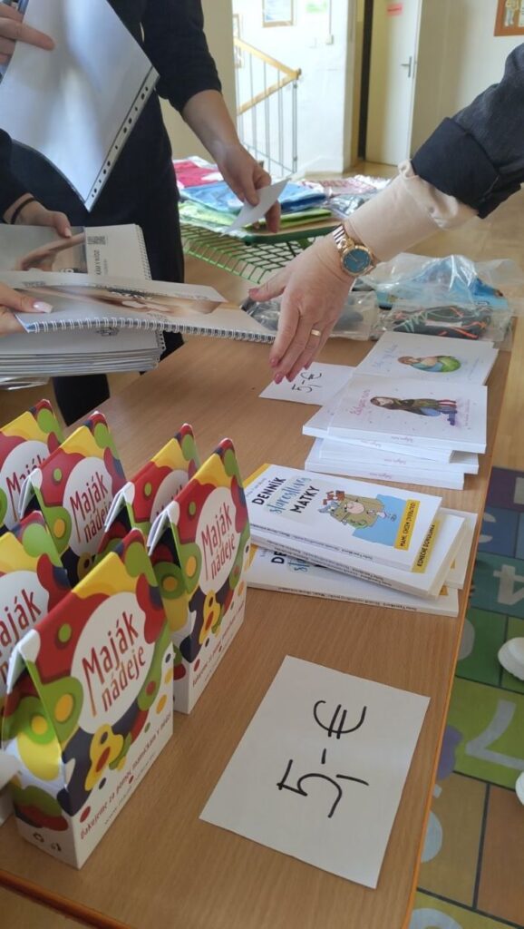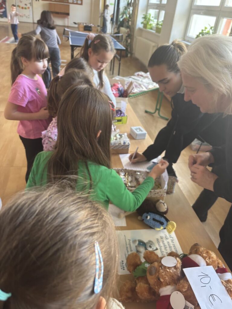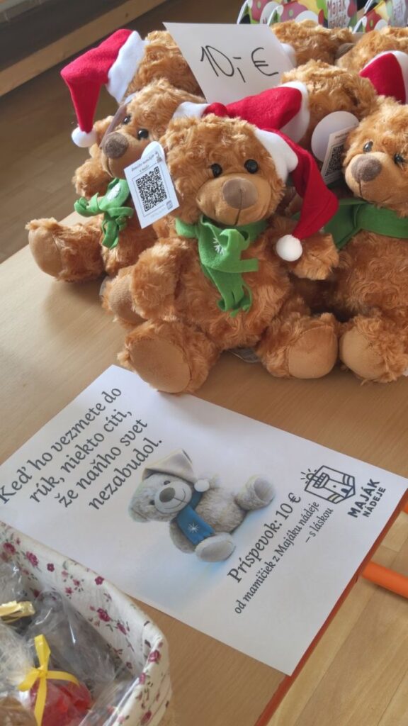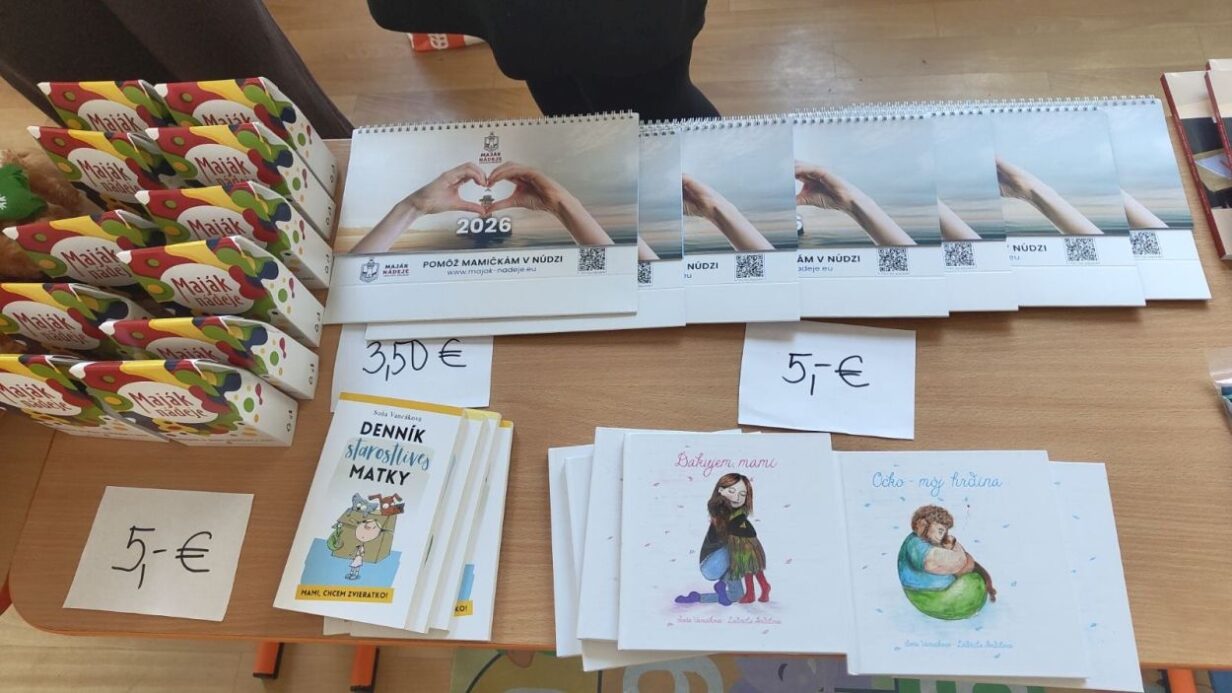 Žiaci našej školy si mohli zakúpiť vlastnoručne vyrobenpôé výrobky, ktoré nám pripravili mamky zo združenia. Najviac sa nám páčili vianoční mackovia, farebné srdiečka, veselé náramky, mydielka, tašky, voňavé vrecúška, ale aj pekné a zaujímavé knižky.                                                                        Kúpou výrobkov z Majáka nádeje sme pohohli rodinám v hmotnej núdzi a mamičkám, ktorých tvorivé výrobky budú ešte dlho hriať pri srdci.