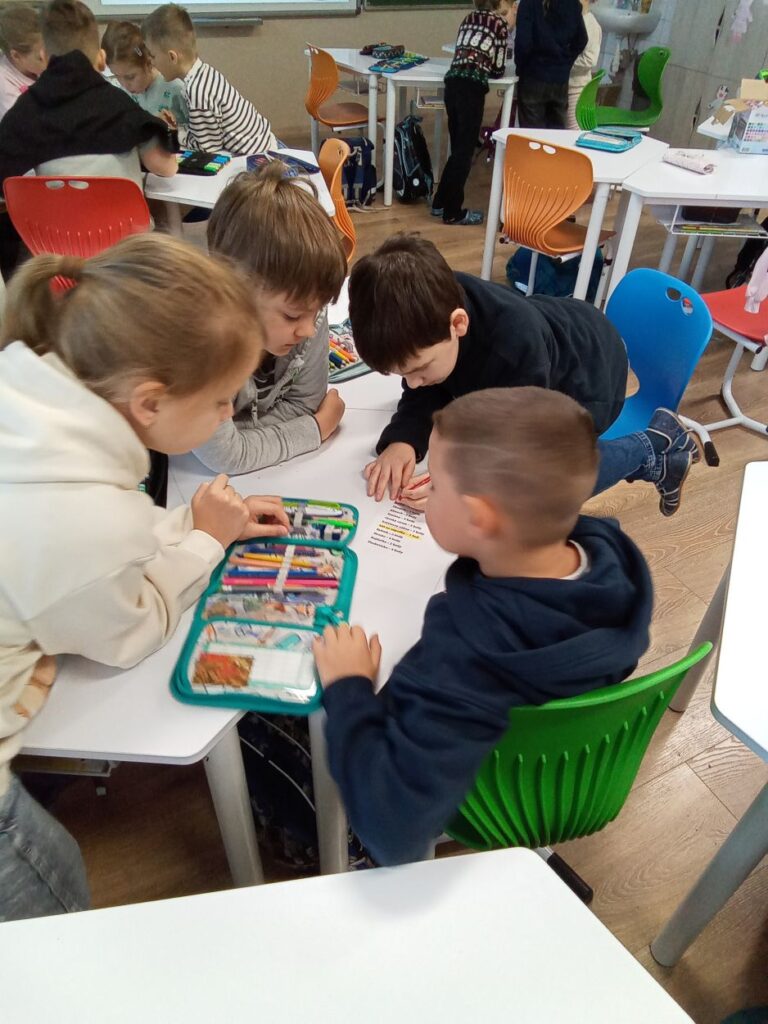Trieda sa zmenila na stavebné firmy – spoločnými silami budovali jeden veľký park. Mali len 10 žetónov, takže rozhodovanie, kompromisy a nečakané situácie boli na dennom poriadku. Skvelá tímová práca!