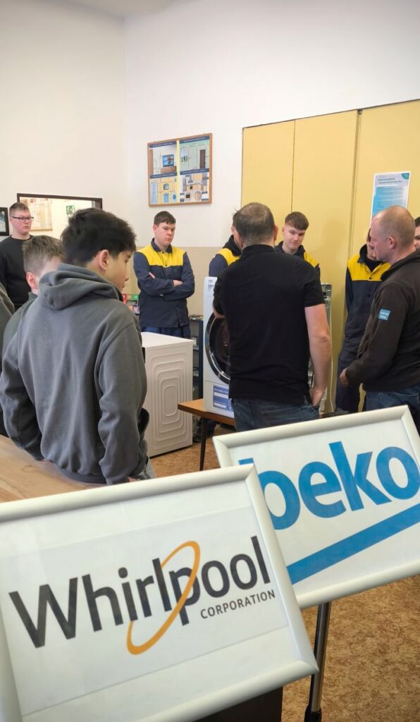 Veľký záujem vzbudil aj praktický workshop pre žiakov odboru mechanik elektrotechnik, zameraný na prácu servisných technikov domácich spotrebičov (sušičky Beko a Whirlpool) ⚙️, ktorý zabezpečili technici zo združenia APPLiA. Súčasťou bol aj tvorivý workshop ručného šitia, kde si žiaci mohli vyskúšať svoju kreativitu a šikovnosť.