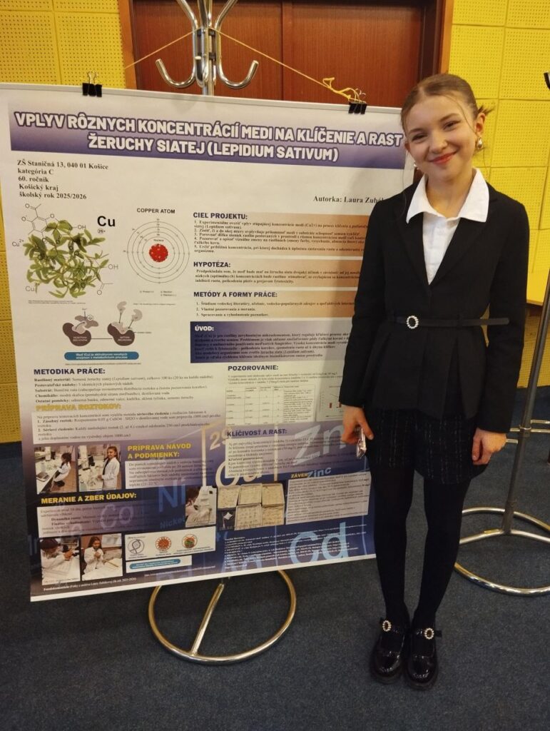 • Laura Zubáková (8. ročník): V posterovej časti súťaže suverénne obsadila 1. miesto. Svojím precíznym spracovaním témy si vybojovala zaslúžený postup do krajského kola.