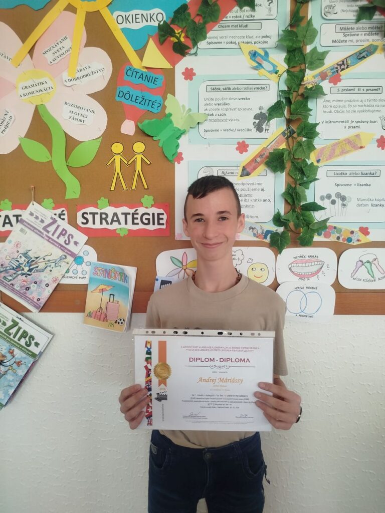 Naša škola má celoslovenského víťaza! Andrej Máriássy získal úžasné 1. miesto v kategórii Cena za tvorivosť v prestížnej súťaži Jazykový kvet (Language Flower).