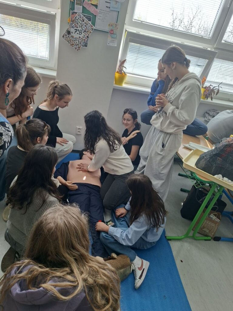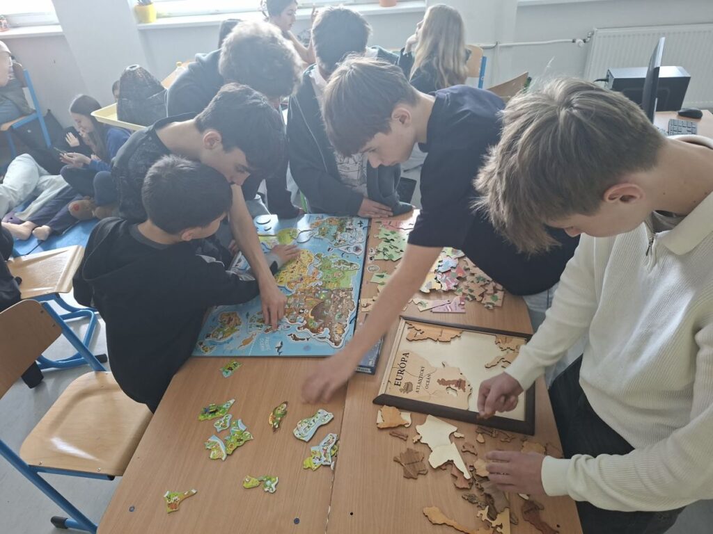 Veľký úspech mal nácvik prvej pomoci. Naši hostia si spolu s nami vyskúšali masáž srdca na profesionálnej figuríne. Program sme si spestrili aj skladaním geografického puzzle, ktoré preverilo našu priestorovú orientáciu na mape a modelom aktívnej sopky.