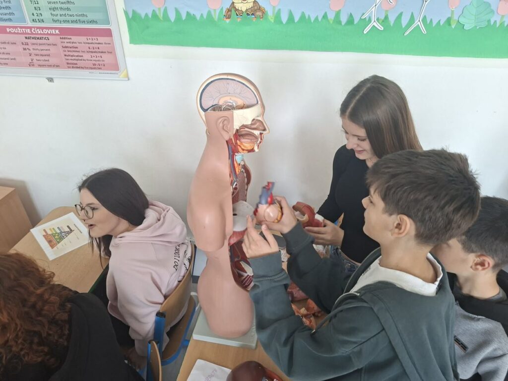 Pripravili sme si pre nich dopoludnie nabité aktivitami, pri ktorých sme spojili biológiu, geografiu, chémiu aj praktickú prvú pomoc. Jazyková bariéra išla bokom, spojil nás spoločný záujem o vedu, objavy a zábavu (a angličtinu).