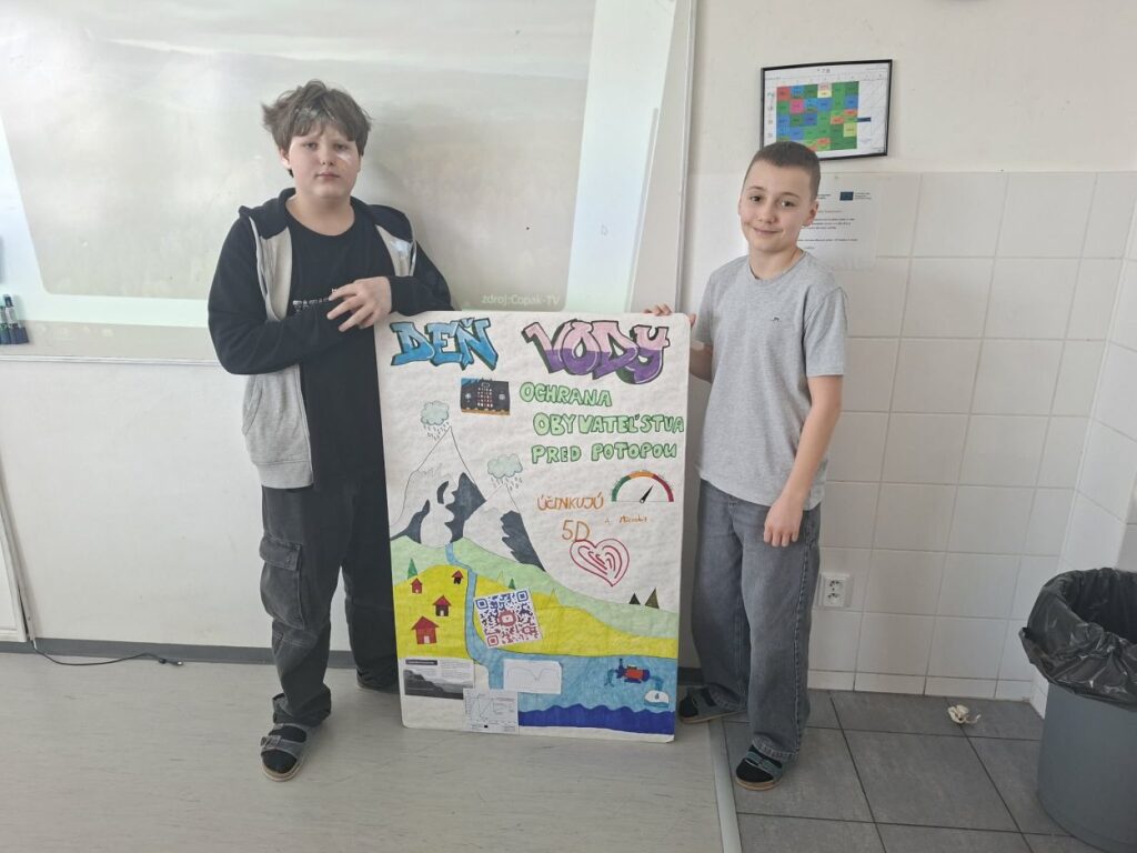 Špeciálnym bodom programu bola prezentácia našich piatakov. Dvaja žiaci z 5.D predstavili svoj inovatívny projekt zameraný na varovanie obyvateľov pred povodňami. Ukázali nám, aké dôležité je byť pripravený na prírodné živly a ako môže včasná informácia zachrániť životy.