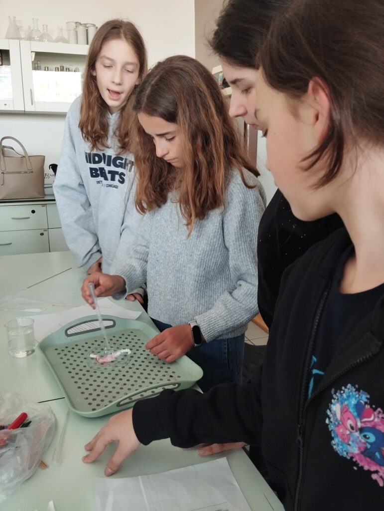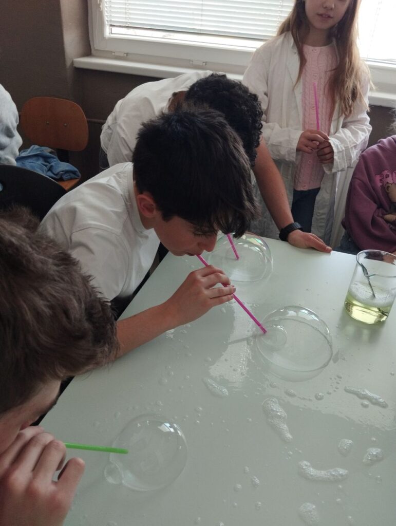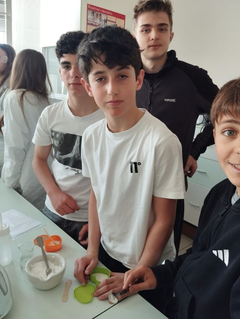 Hlavnú rolu zohrali naši šikovní žiaci z krúžku „Veda nás baví“. Pod vedením svojej vyučujúcej si pre zahraničných hostí nachystali sériu pútavých chemických pokusov. Cieľom nebolo len predvádzať, ale najmä zapájať – španielski žiaci si tak pod dohľadom našich mladých vedcov mohli všetky experimenty samostatne vyskúšať.