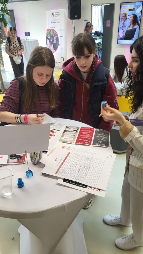 Počas podujatia sme videli vodíkové auto, vyskúšali si okuliare s virtuálnou realitou, úpravu fotografií pomocou umelej inteligencie, micro:bity, rôzne roboty aj Lego roboty, ktoré si dievčatá mohli samy naprogramovať. Najviac ich zaujal stánok s raketami a lietadlami, ktorý patril medzi jednoznačne najobľúbenejšie, navyše ho prezentovala naša bývalá žiačka Barborka, čo nás nesmierne potešilo.