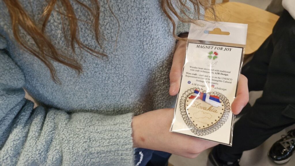 - Pod vedením rodiny Rohúnovej si žiaci vyskúšali tradičné drotárstvo. Výroba vlastných magnetiek s drotárskymi prvkami preverila ich zručnosť aj trpezlivosť a výsledné dielka im budú pripomínať kúsok našej tradície.